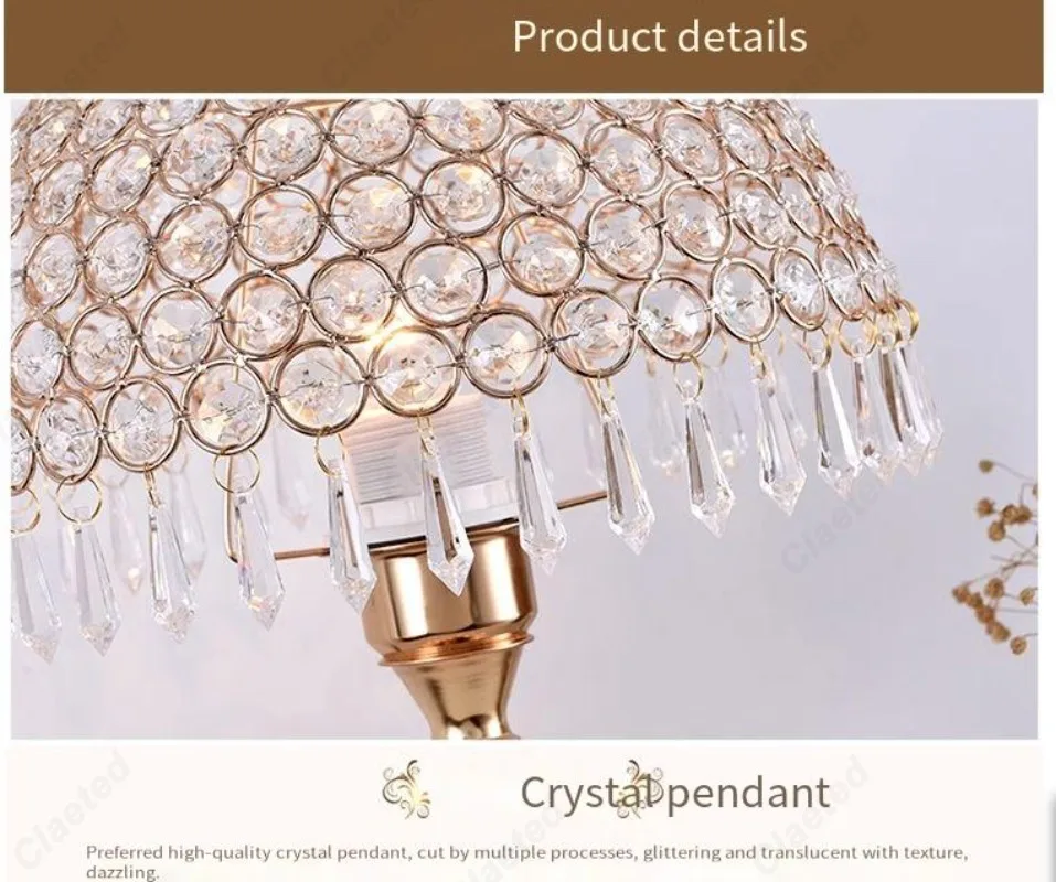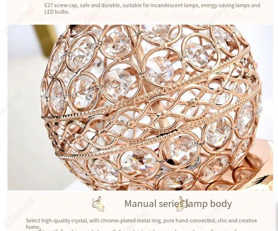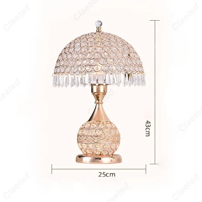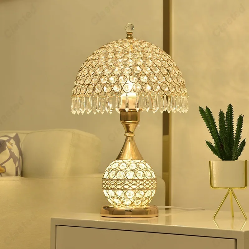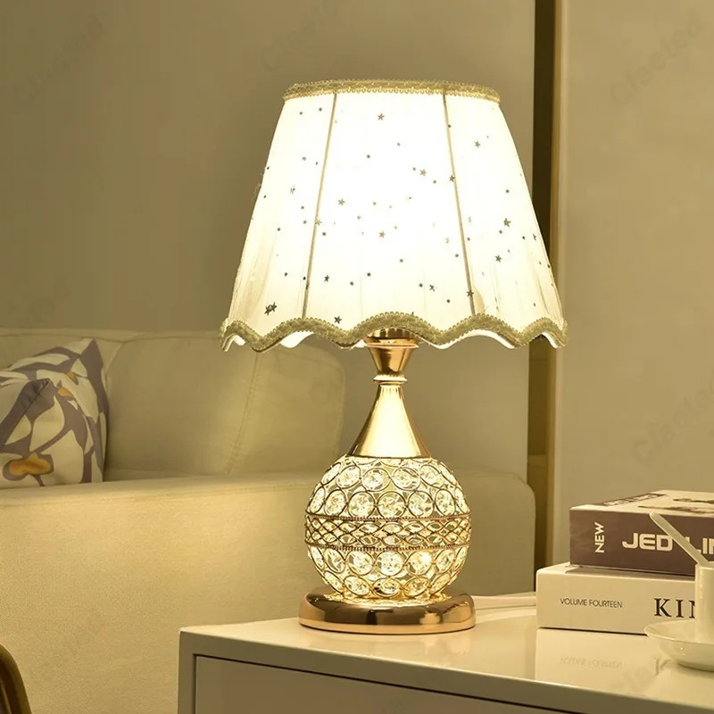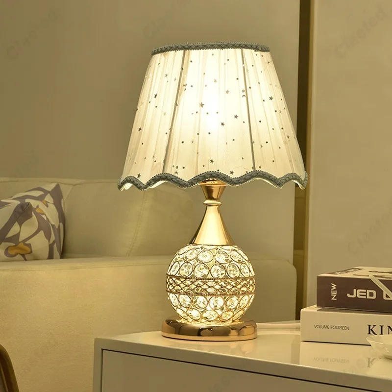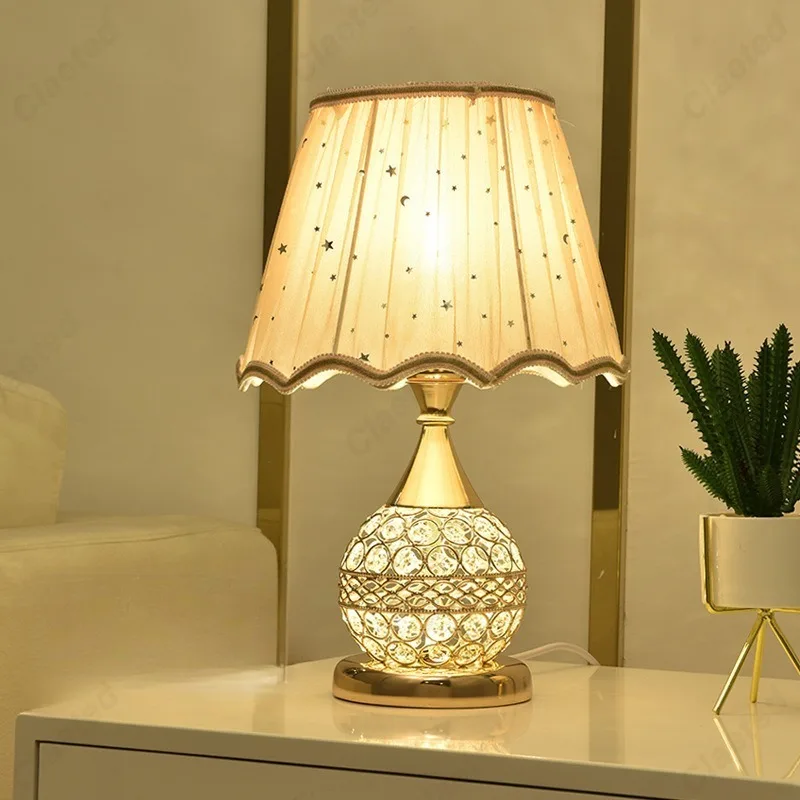 Simples led tecido abajur lâmpada de cristal corpo e27 lâmpada mesa quarto europeu casa quente luxo romântico lâmpada cabeceira