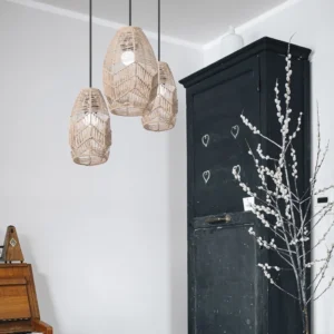 O abajur de corda com imitação de rattan é a escolha perfeita para quem busca um toque de elegância e sofisticação em sua decoração. Feito de materiais duráveis como corda e ferro, este lustre pendente é ideal para diversos ambientes, como salas de estar, quartos, cozinhas e até mesmo bares.