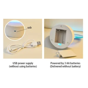 • Fonte de Luz Colorida: O abajur possui um efeito de iluminação que muda de cor ao toque, criando um gradiente suave de sete cores.