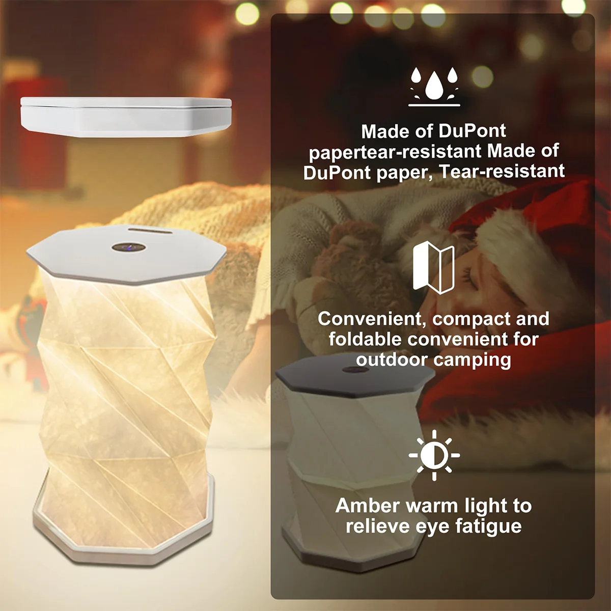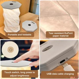 O Abajur de Mesa Dobrável Portátil é a solução perfeita para quem busca praticidade e elegância na iluminação. Com um design inspirado no origami, este abajur é feito de papel Tyvek e ABS, tornando-se ultrafino quando dobrado, ideal para armazenar e transportar. Sua luz LED proporciona um fluxo luminoso ajustável entre 249 e 2000 lumens, criando uma atmosfera aconchegante e relaxante em qualquer ambiente.