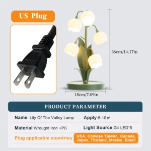 Transforme seu espaço com o nosso abajur de mesa floral vintage, que traz a delicadeza das flores do Lírio do Vale. Com cinco lâmpadas que imitam essas flores, este abajur é a escolha perfeita para quem busca um toque de elegância e natureza em sua decoração.