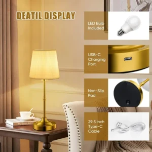 O Abajur de Mesa Recarregável Vintage em Ouro é a escolha perfeita para quem busca elegância e praticidade. Com um design sofisticado, este candeeiro traz um toque de charme para qualquer ambiente, seja no quarto, sala de estar ou escritório.