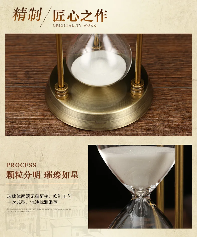 Ampulheta de Metal Retrô para Decoração – 1/3/5/10/15 Minutos