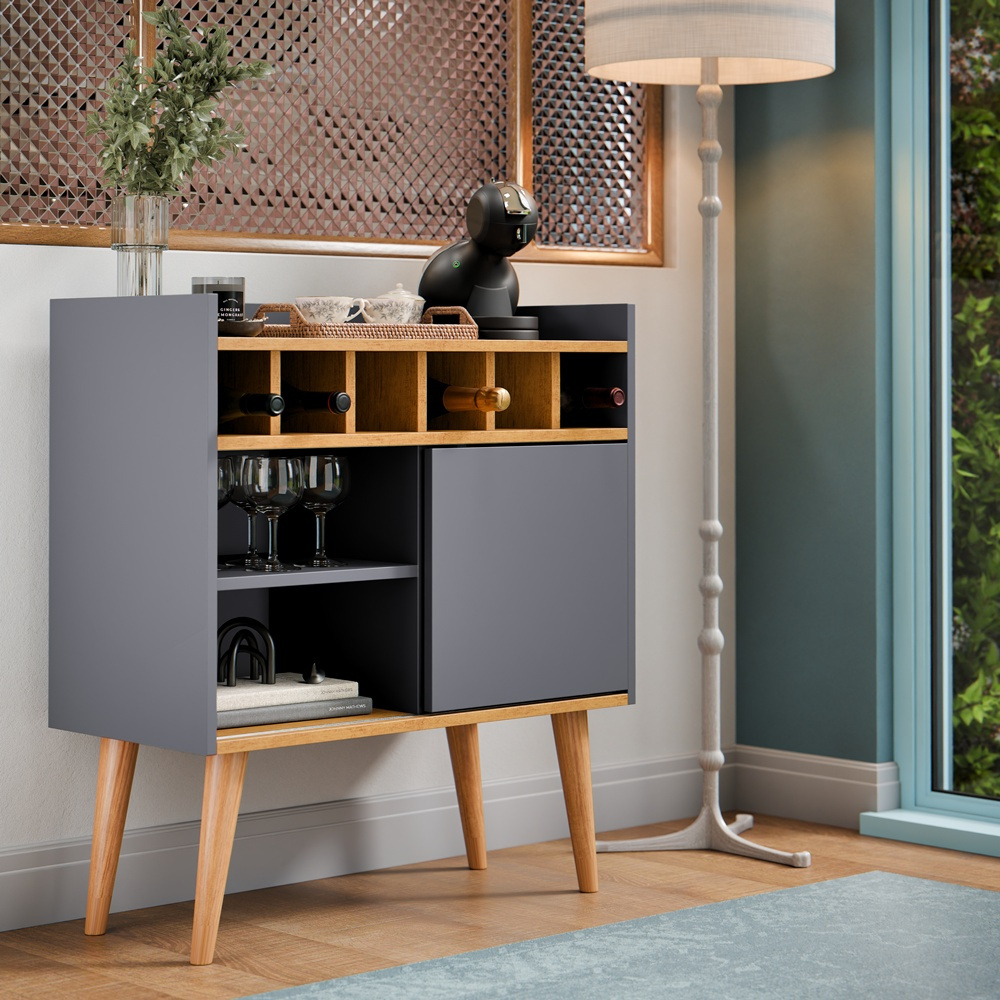 O Aparador Florença oferece uma solução prática e elegante para organizar seus objetos e bebidas! Combina perfeitamente com diversos estilos de decoração, adicionando um toque sofisticado ao seu espaço.