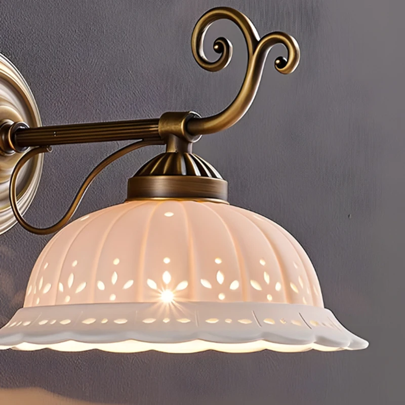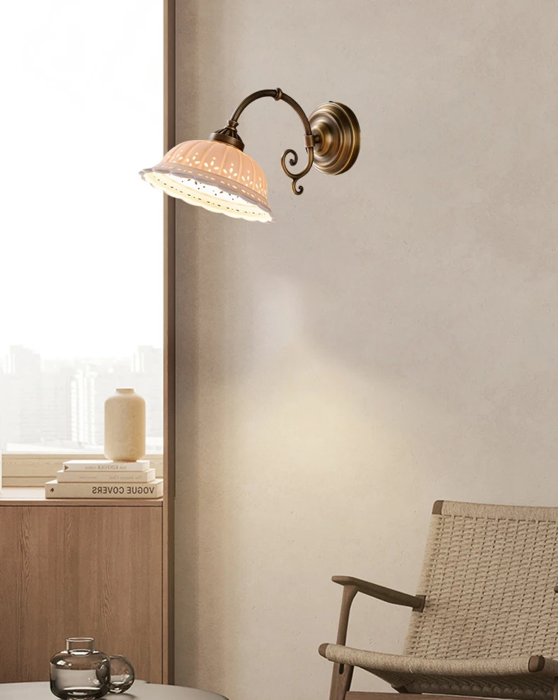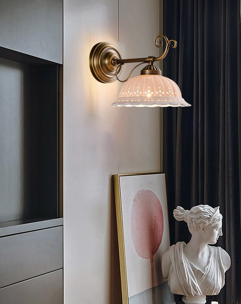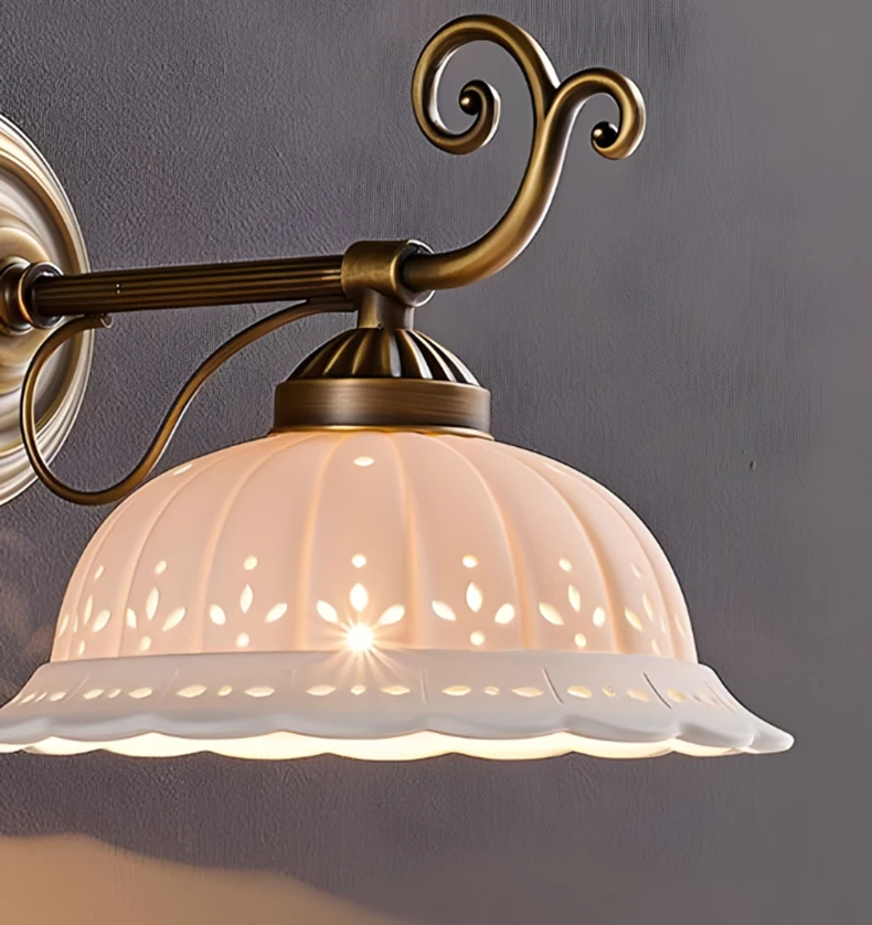 Transforme a sua casa com a nossa arandela de cerâmica branca, que combina um design clássico com detalhes em latão. Ideal para ambientes como salas de estar, quartos e até mesmo banheiros, esta luminária traz um toque de sofisticação e charme europeu à sua decoração.