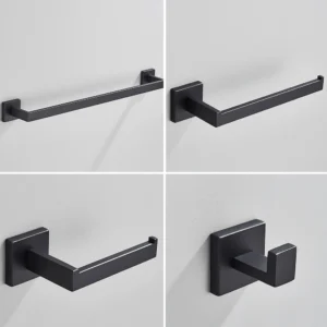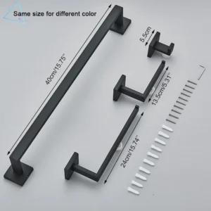 O Conjunto de Acessórios para Banheiro em Aço Inoxidável é a escolha perfeita para quem busca elegância e funcionalidade. Com um acabamento escurecido e opções de cores sofisticadas, como Preto Fosco e Dourado Escovado, este conjunto traz modernidade e charme ao seu espaço.