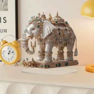 Transforme o ambiente da sua casa com esta incrível decoração de mesa em acrílico, que apresenta um lindo elefante adornado com joias indianas. Este ornamento versátil é perfeito para diversas ocasiões, trazendo um toque de charme e sofisticação ao seu espaço.