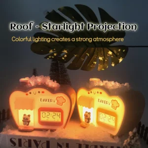 Transforme seu quarto com este despertador criativo que também funciona como uma luz noturna encantadora. Com um design único em formato de cabana, ele é perfeito para decoração de mesa e traz um toque especial ao seu ambiente. A luz muda de cor, criando uma atmosfera relaxante e aconchegante, ideal para momentos de descanso ou leitura.
