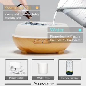 O Difusor de Óleo Essencial de Aromaterapia é a solução ideal para quem busca um ambiente relaxante e aromático. Com capacidade de 500ML, ele proporciona uma umidificação eficaz e uma experiência sensorial única. O controle remoto facilita o uso, permitindo que você ajuste as configurações sem sair do lugar.