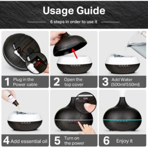 Com um design elegante, este difusor pode ser utilizado em casa, no escritório ou em qualquer lugar que precise de um toque de frescor e tranquilidade. Experimente a combinação de umidificação e aromaterapia e sinta a diferença no seu dia a dia!