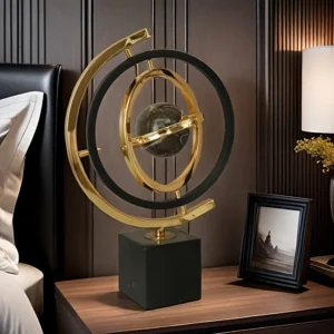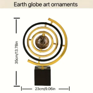 A escultura moderna abstrata de globo metálico preto e dourado é a peça perfeita para adicionar um toque de sofisticação à sua decoração. Ideal para ambientes como salas de estar, escritórios ou estantes, este objeto de arte não só embeleza o espaço, mas também reflete um estilo contemporâneo e minimalista.