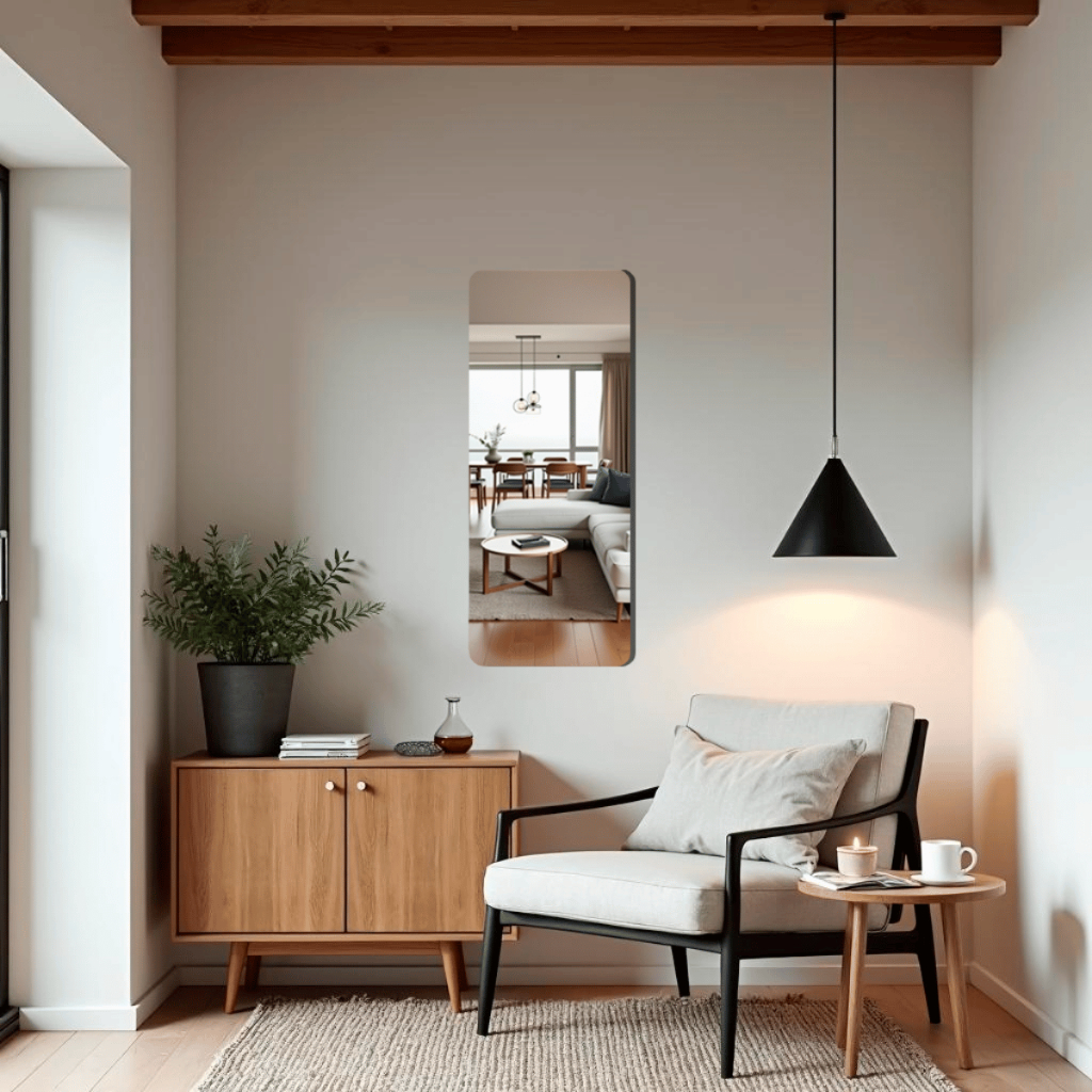 Espelho Grande Retangular para Sala, Quarto e Banheiro – Design Elegante com Dupla Face e Suporte Incluído