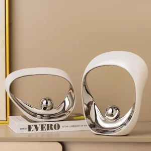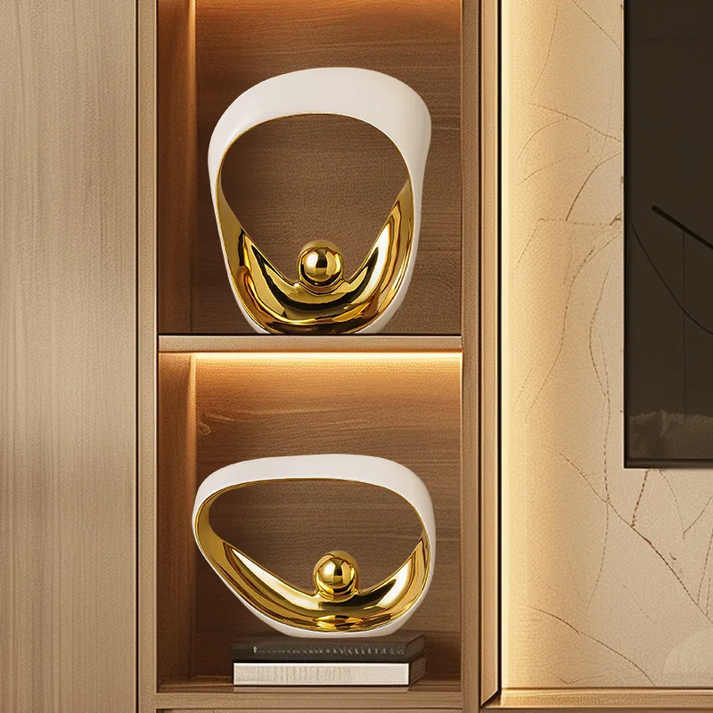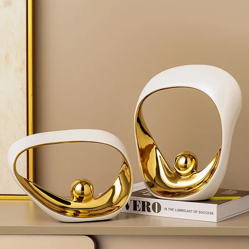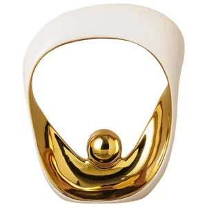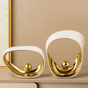 Transforme seu ambiente com esta estatueta decorativa geométrica dourada, ideal para escritórios e casas modernas. Com um design abstrato e elegante, esta escultura em cerâmica traz um toque sofisticado a qualquer espaço. Feita com materiais de alta qualidade, ela é perfeita para quem busca uma decoração contemporânea e estilosa.