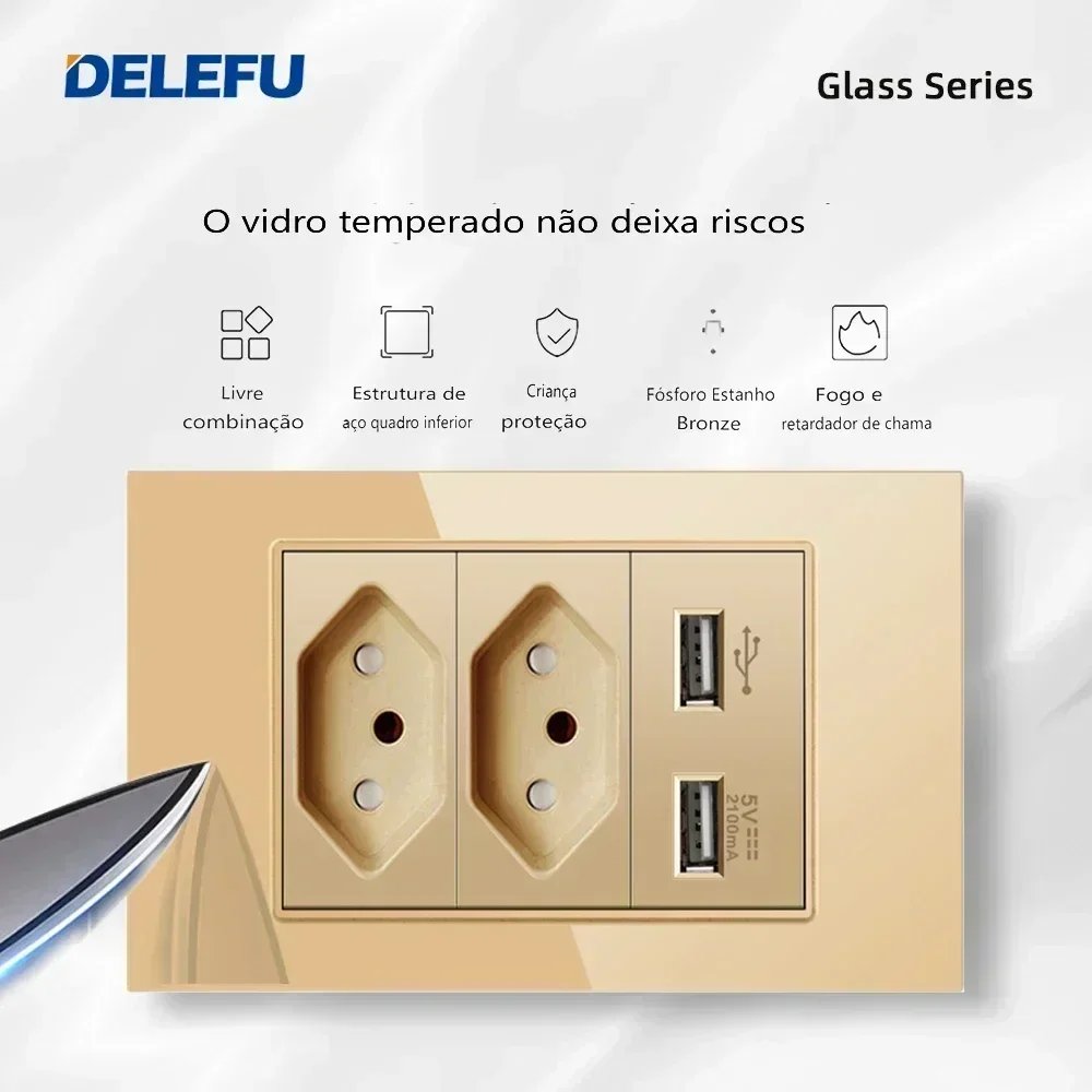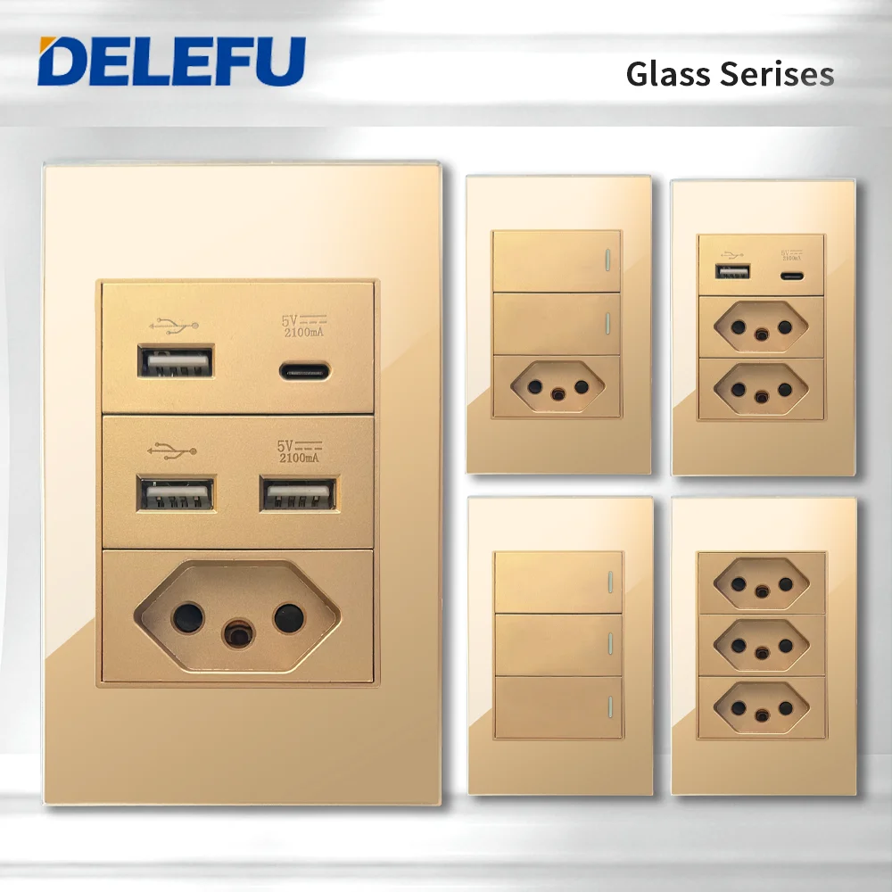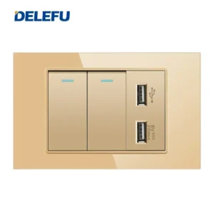 Transforme a sua casa com o Interruptor de Luz com Tomada e USB, um produto que combina funcionalidade e elegância. Com um design moderno em vidro temperado dourado, ele se adapta perfeitamente a qualquer ambiente, seja na sala, no quarto ou no escritório.