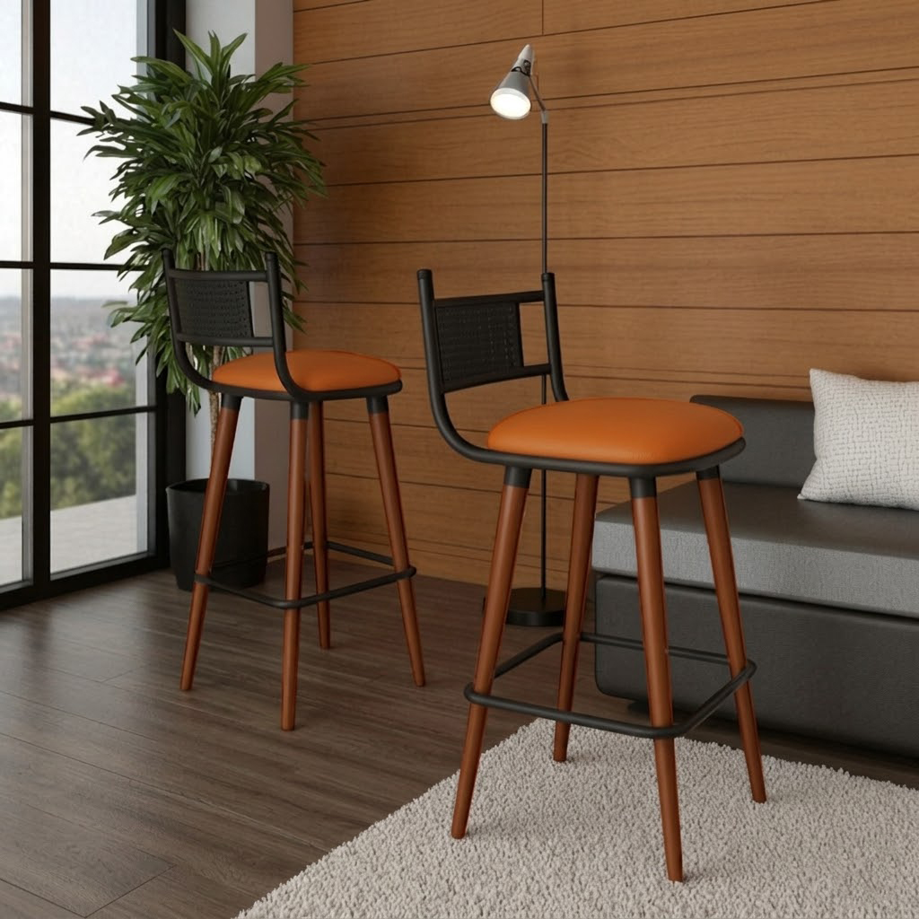KIT 2 Banquetas Estofadas Alta Com Pés De Madeira Lily Cor Terracota/Preto