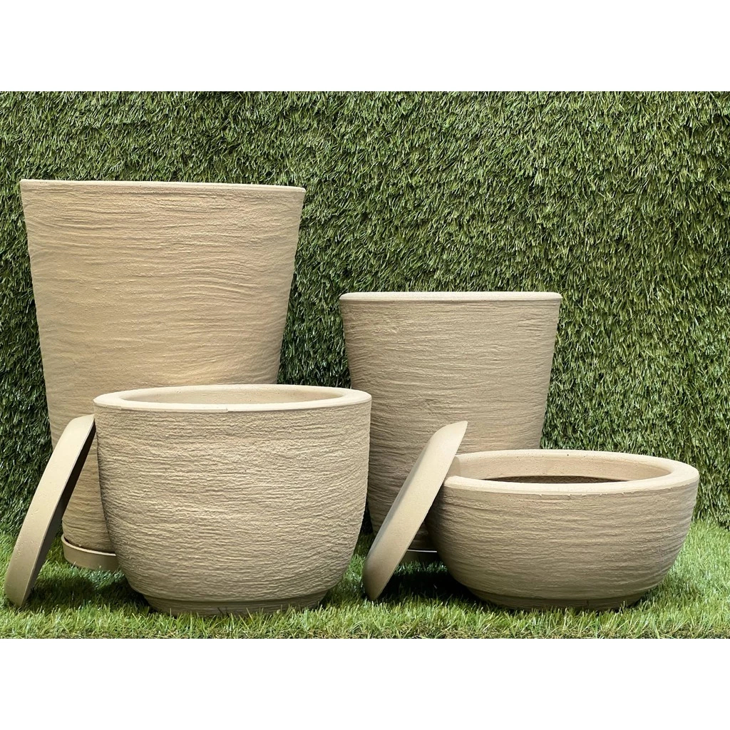 KIT COM 4 VASOS TEXTURIZADOS EM POLIETILENO + PRATOS