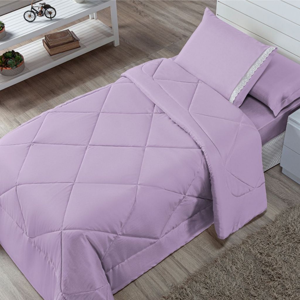 Kit Edredom Solteiro Infantil Aconchego com Lençol 04 Peças