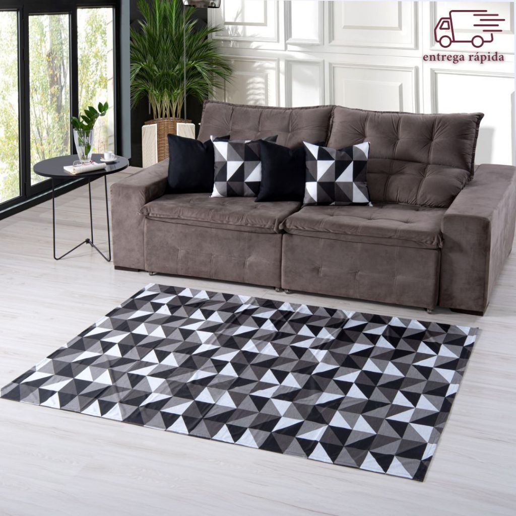 KIT TAPETE SALA QUARTO GEOMETRICO 1M X 1,40M + 04 CAPAS GORGURINHO 45CMX45CM JOGO COMPLETO