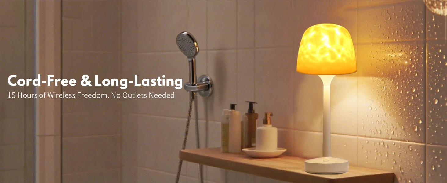 Lâmpada de Chuveiro Recarregável à Prova d’Água com Projeção de Ondas
