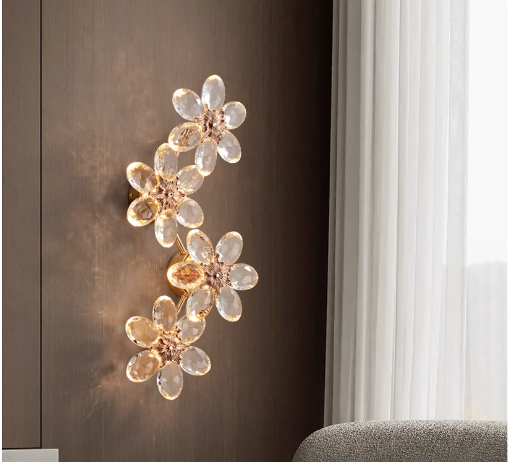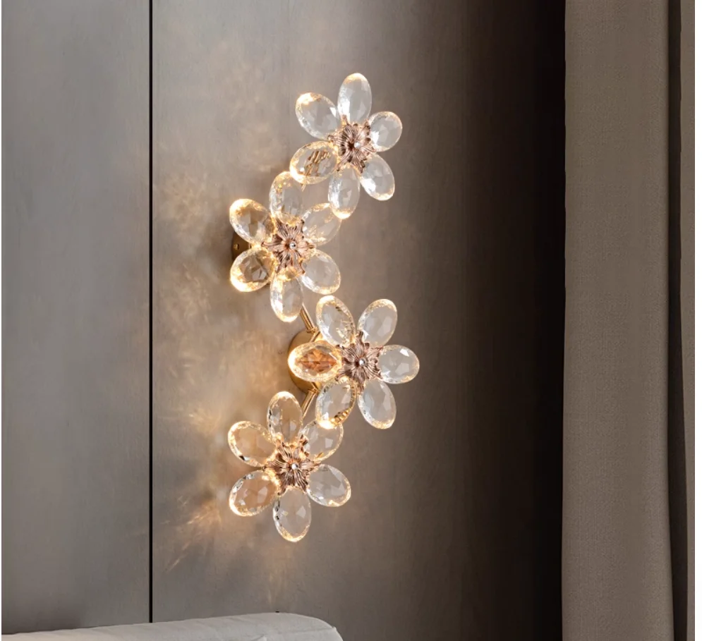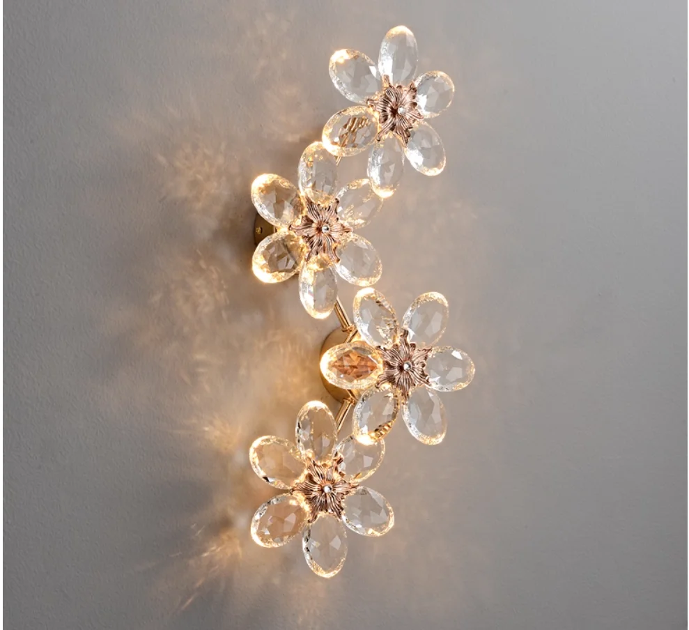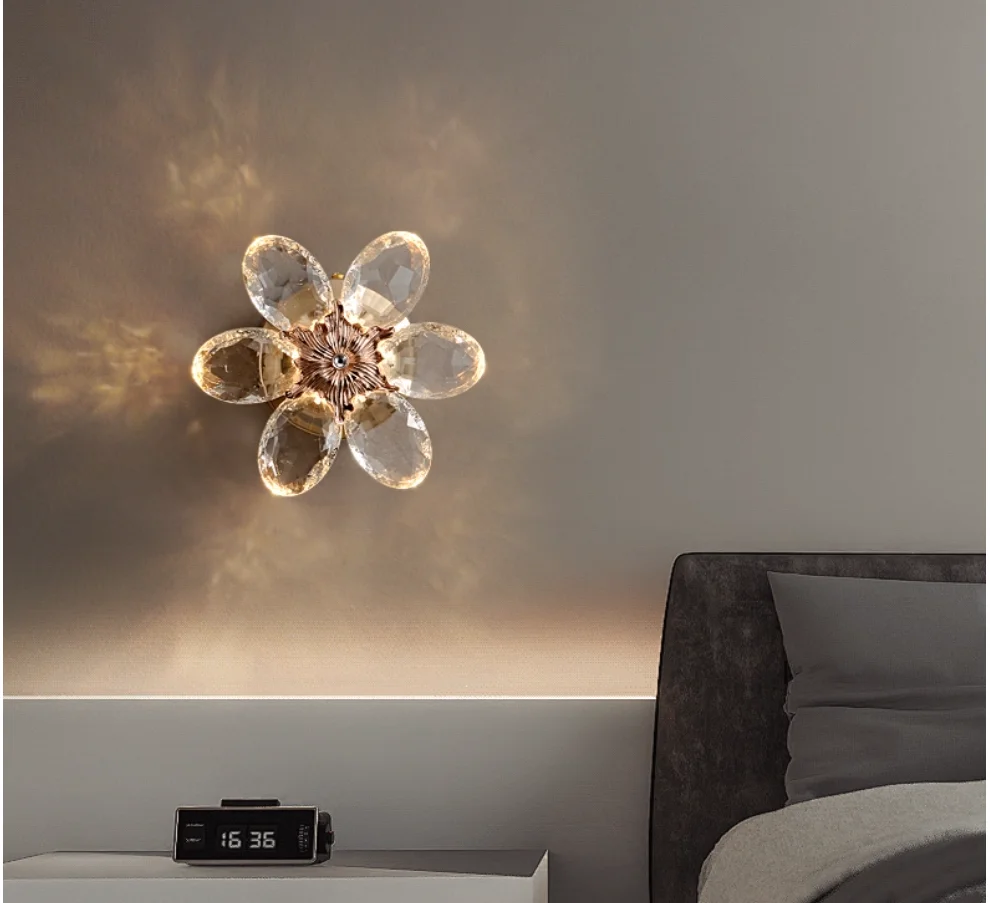 Lâmpada de Parede Cristal Moderna em Formato de Flor – Iluminação Elegante