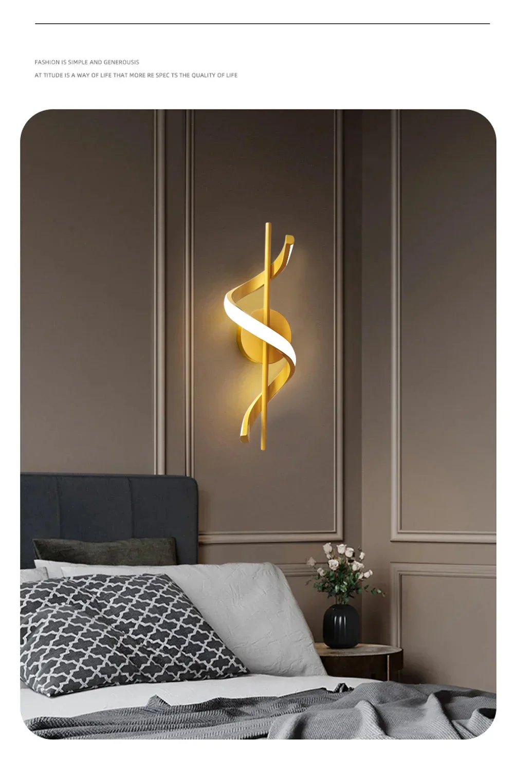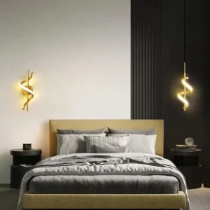 Lâmpada de Parede LED Minimalista para Quarto e Sala – Preto e Ouro