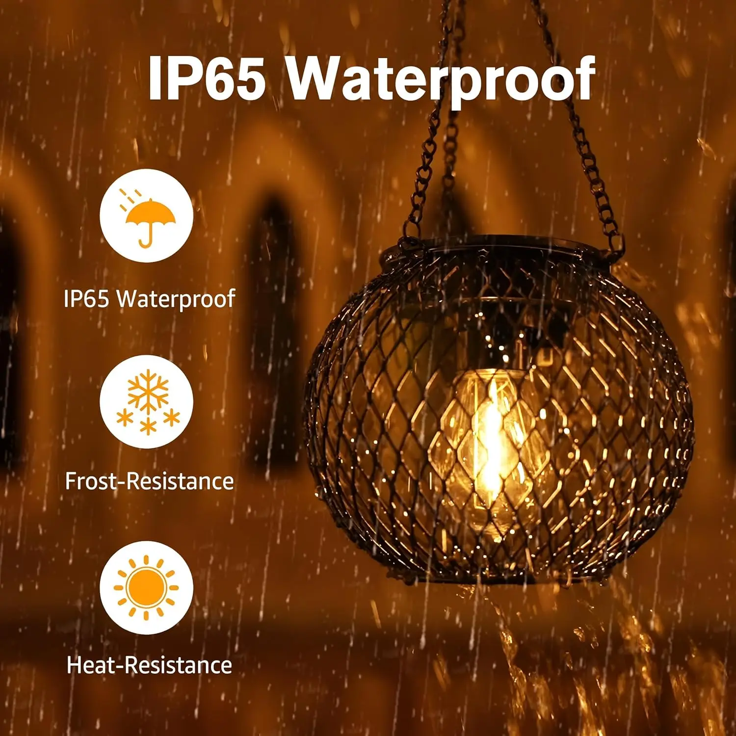 - Resistente à água com classificação IP65, ideal para uso externo.