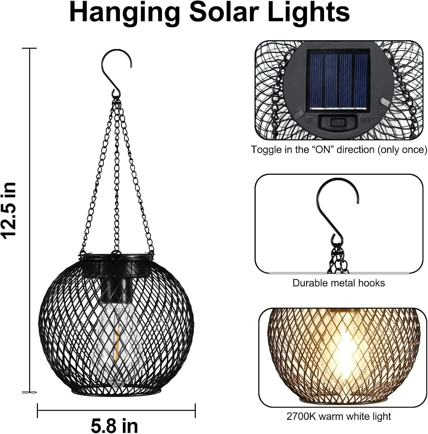 Com 5 metros de comprimento, esta lanterna é perfeita para iluminar áreas amplas. As baterias estão incluídas, garantindo que você possa desfrutar da sua nova iluminação assim que chegar. Transforme seu espaço externo em um ambiente mágico e convidativo com esta lanterna solar!