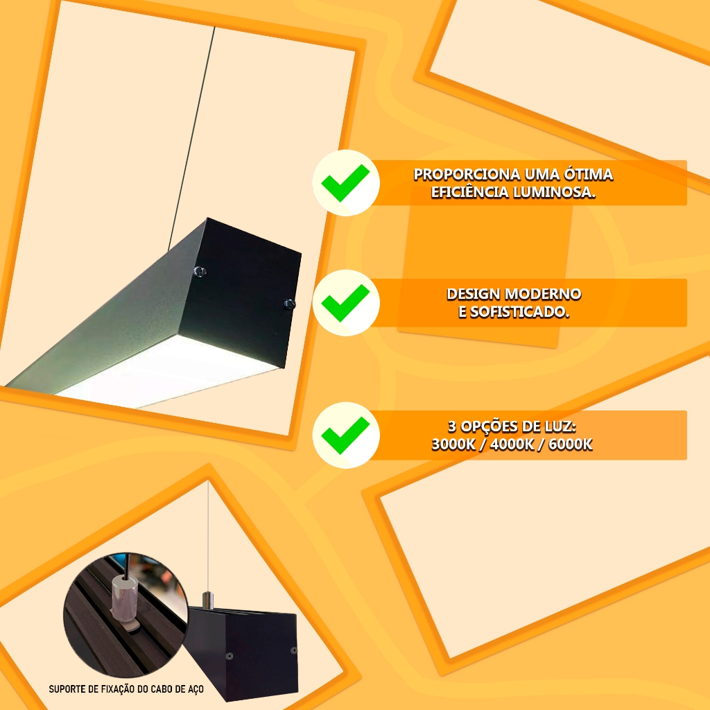 – Luminária com acessórios para fixação pendente ou sobrepor.