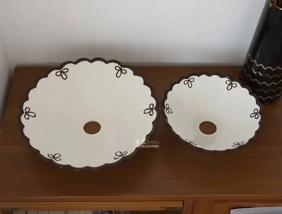 Transforme seu espaço com esta luminária de teto vintage, feita em cerâmica pintada à mão, que traz um toque de elegância e charme para qualquer ambiente. Ideal para cafés e salas de jantar, seu design clássico combina com a decoração de diversos estilos.