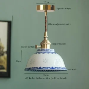 Transforme sua sala de estar ou jantar com esta deslumbrante luminária pendente vintage. Feita em cerâmica de alta qualidade, ela traz um toque de elegância e sofisticação ao seu ambiente. O design clássico e o acabamento em cobre polido tornam esta luminária uma peça central perfeita para qualquer espaço.