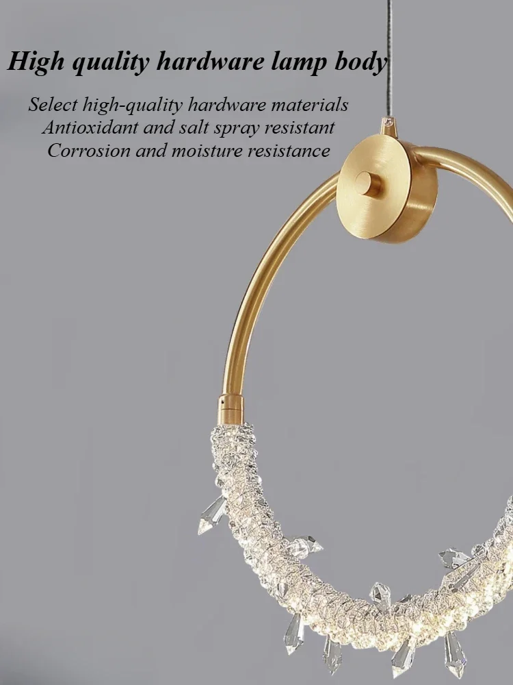 Transforme a decoração da sua casa com o lustre de cristal nórdico moderno da Sandyha. Este lustre circular é perfeito para salas de estar, quartos e outros ambientes, proporcionando uma iluminação suave e elegante. Com um design sofisticado em tom dourado e acabamento em cobre polido, ele se destaca em qualquer espaço.