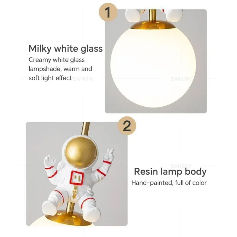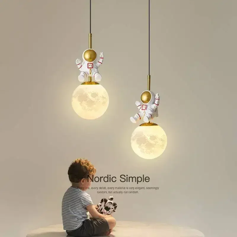 Transforme o ambiente do quarto dos pequenos com o nosso lustre pendente astronauta. Com um design moderno e criativo, esta luminária não só ilumina, mas também encanta com sua forma lúdica. Ideal para quartos infantis, ela traz um toque de magia e diversão, tornando a hora de dormir mais especial.