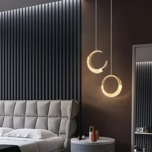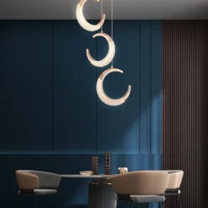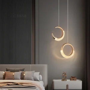 Ilumine seu ambiente com esta incrível luz pendente moderna, perfeita para quartos, salas de estar e corredores. Com um design criativo que lembra a lua, esta luminária traz um toque de elegância e sofisticação para qualquer espaço. Feita de acrílico de alta qualidade e metal, ela combina durabilidade e estilo.