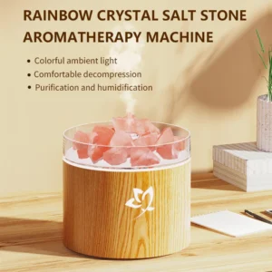 A Máquina de Aromaterapia de Pedra de Sal Cristal é a solução perfeita para quem busca um ambiente relaxante e saudável. Ideal para escritórios e quartos, este umidificador não só melhora a qualidade do ar, mas também proporciona uma atmosfera acolhedora com suas lâmpadas coloridas.