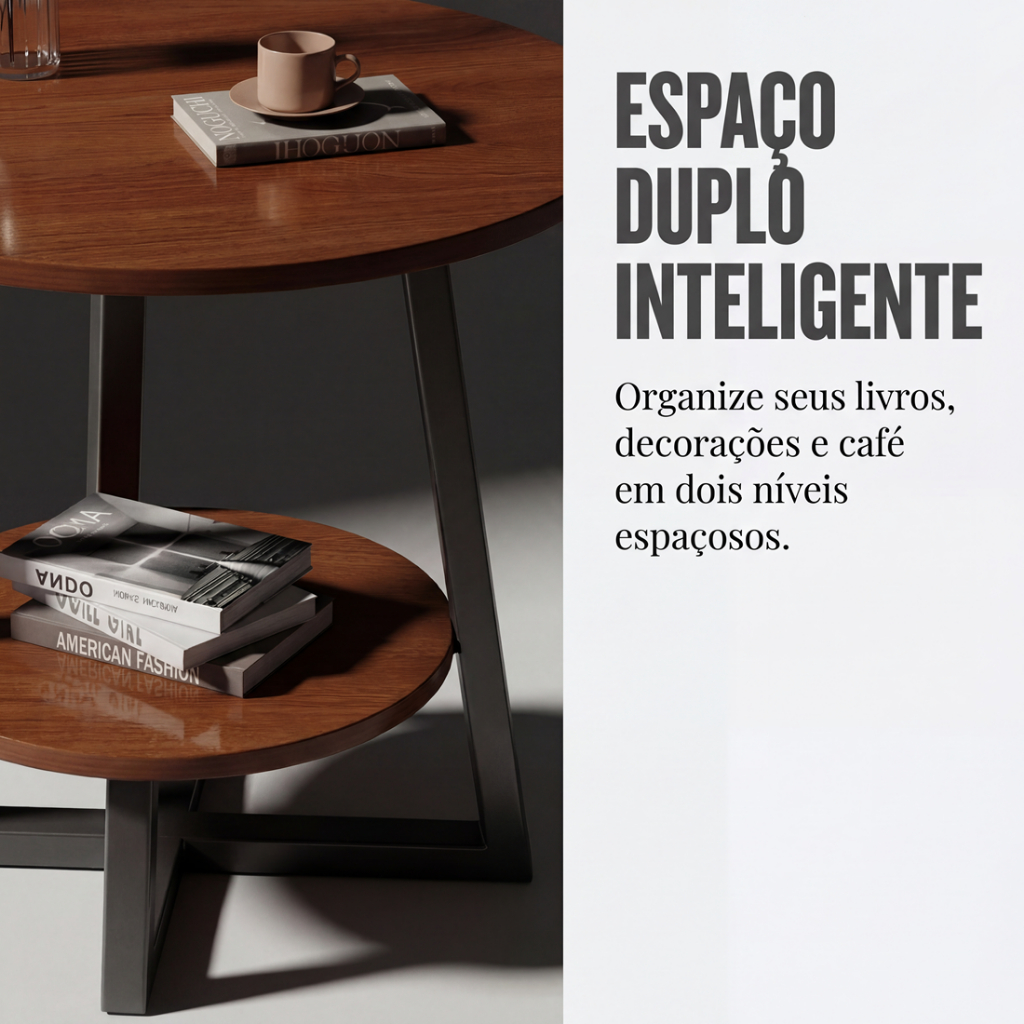 DUPLA FUNÇÃO COM 2 NÍVEIS: Aproveite o tampo superior para apoiar bebidas, livros ou decorações, e a prateleira inferior para organizar mantas, revistas ou outros itens, mantendo tudo acessível e a sala sempre arrumada.