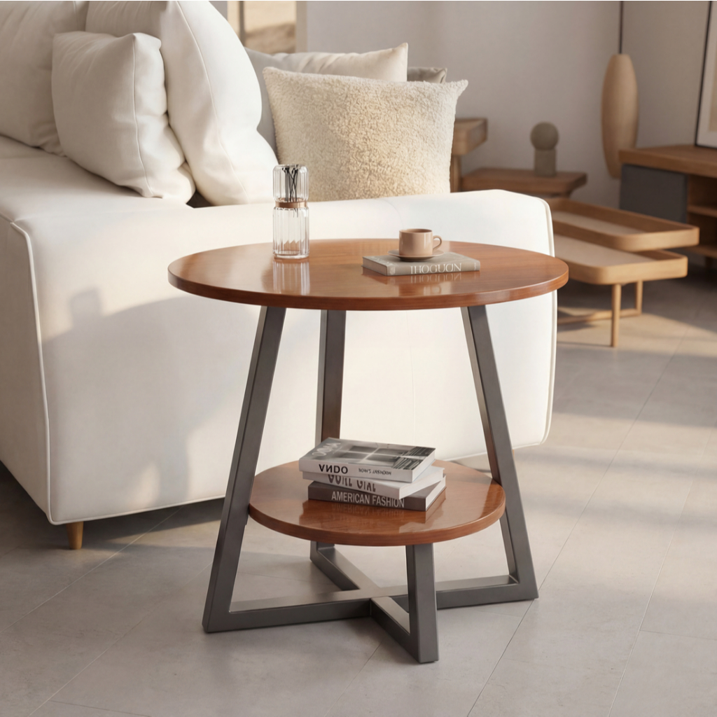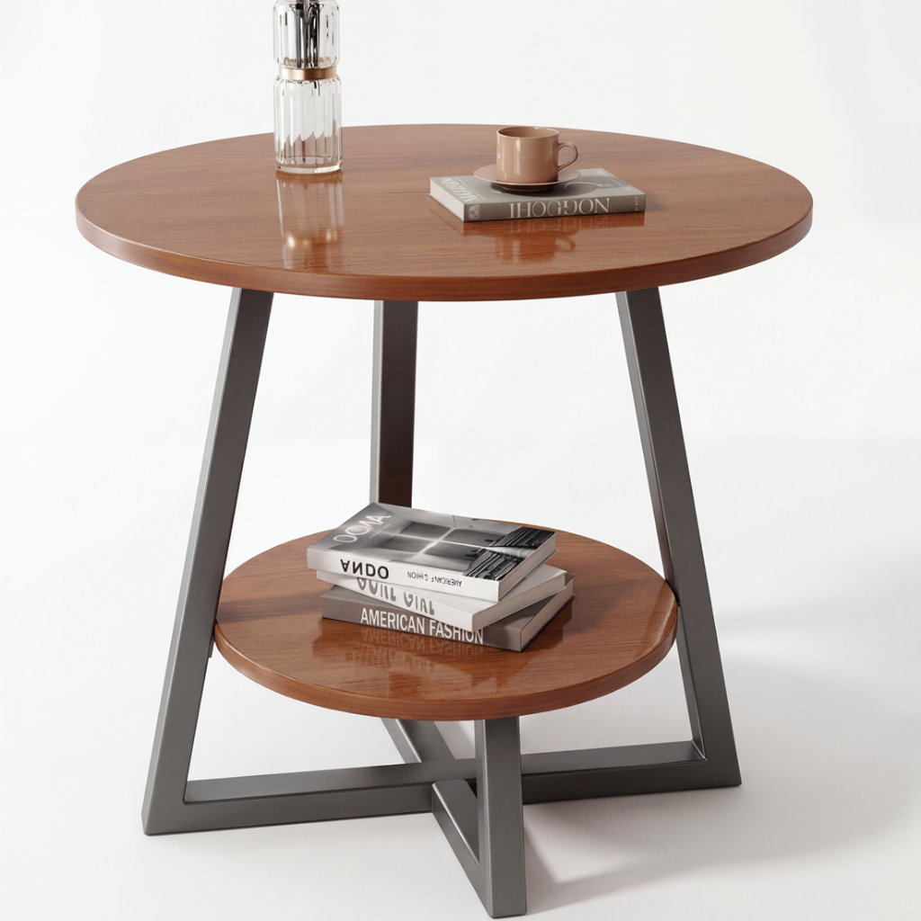 Design Redondo, com 2 níveis (tampo + prateleira)
