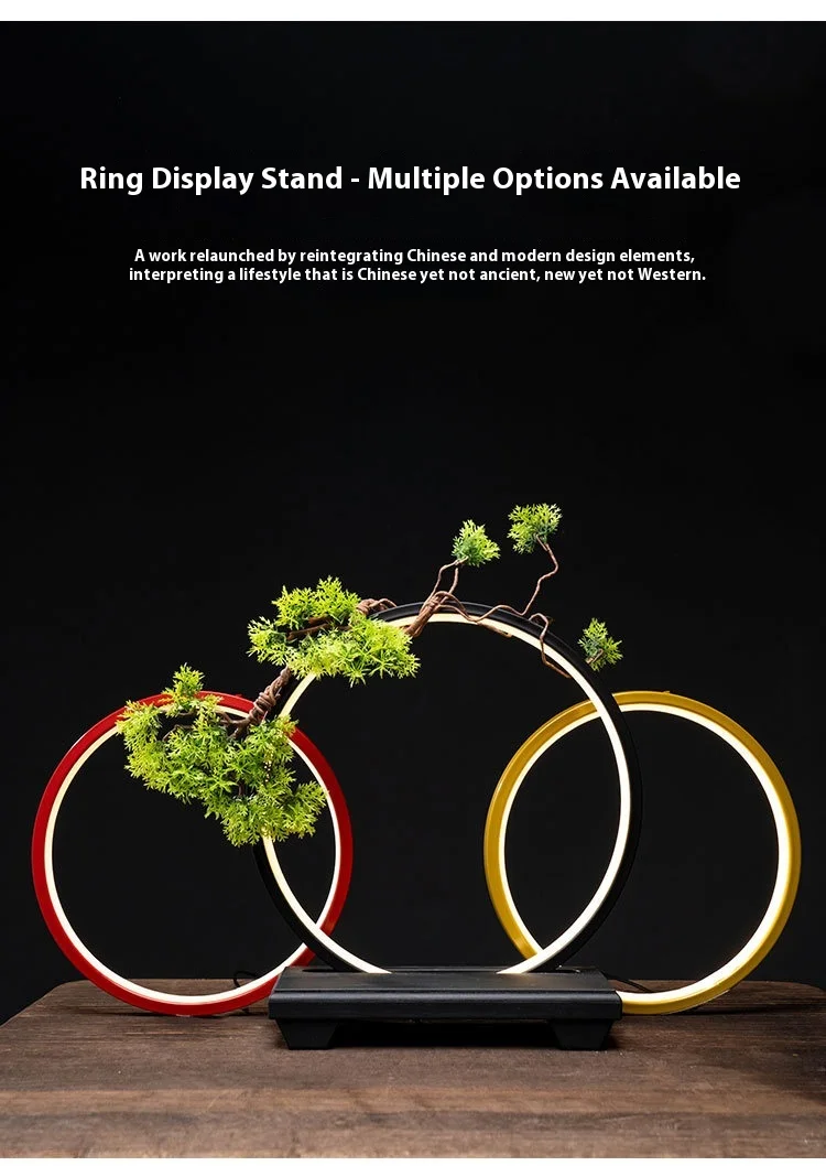 Transforme sua mesa de trabalho ou espaço de fotografia com o nosso Ornamento de Anel de Luz LED no elegante estilo chinês. Este suporte de exibição não é apenas uma fonte de luz, mas também um elemento decorativo que traz sorte e charme ao seu ambiente.