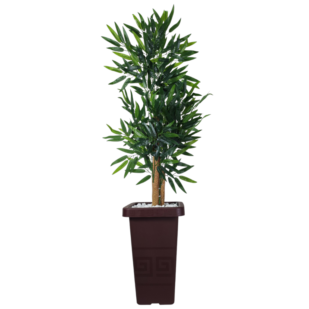 Árvore de bambu artificial ideal para decorar ambientes internos e comerciais, trazendo um toque natural e sofisticado à decoração. Possui tronco revestido em fibra de coco natural, garantindo um acabamento realista e elegante. Acompanha vaso, pronta para uso, proporcionando praticidade e fácil adaptação a diversos estilos de ambiente. Sua folhagem bem distribuída confere aparência harmoniosa e agradável, sendo uma excelente opção para salas, escritórios, recepções, corredores e varandas cobertas. Não necessita de manutenção, unindo beleza, durabilidade e praticidade no dia a dia.