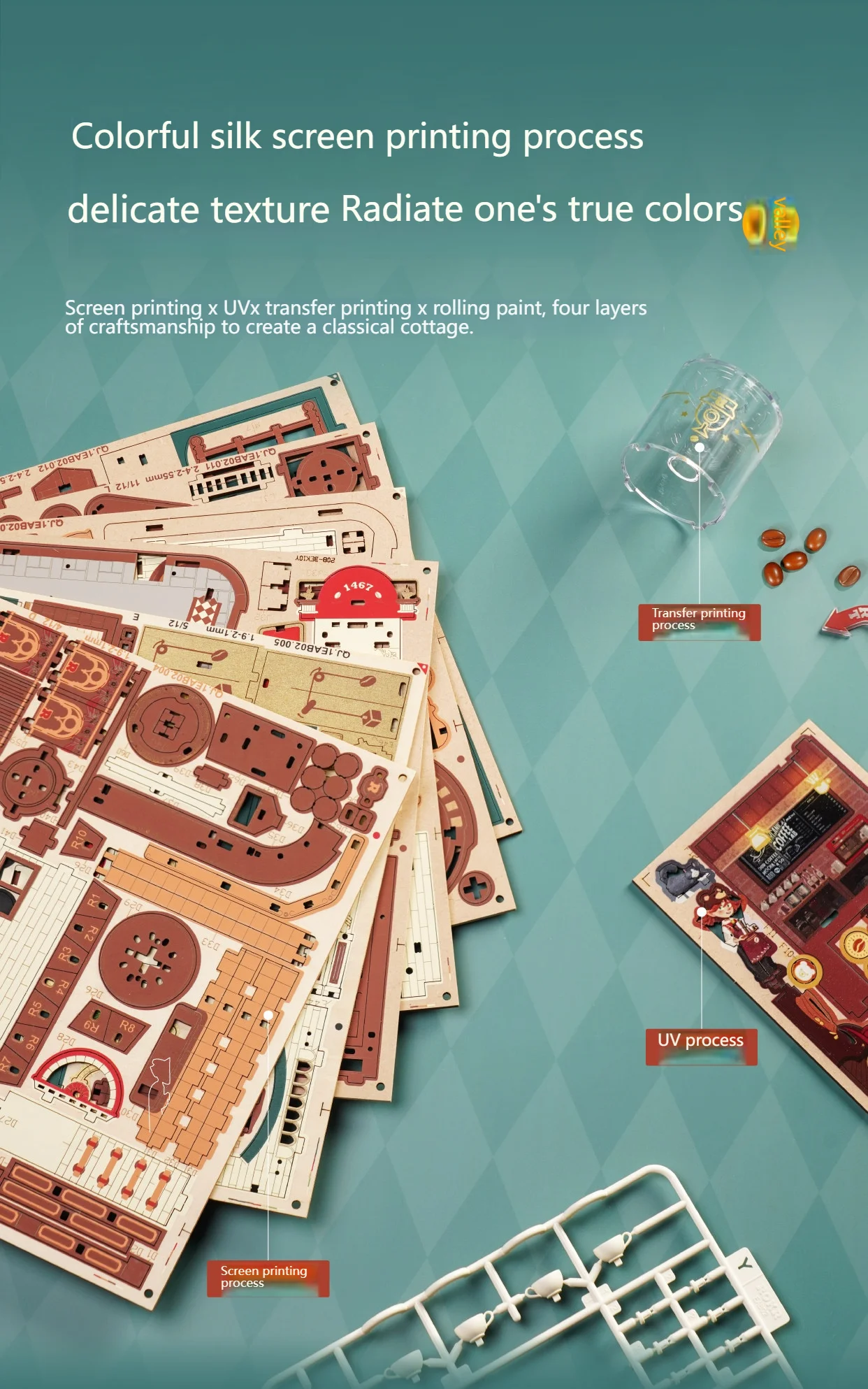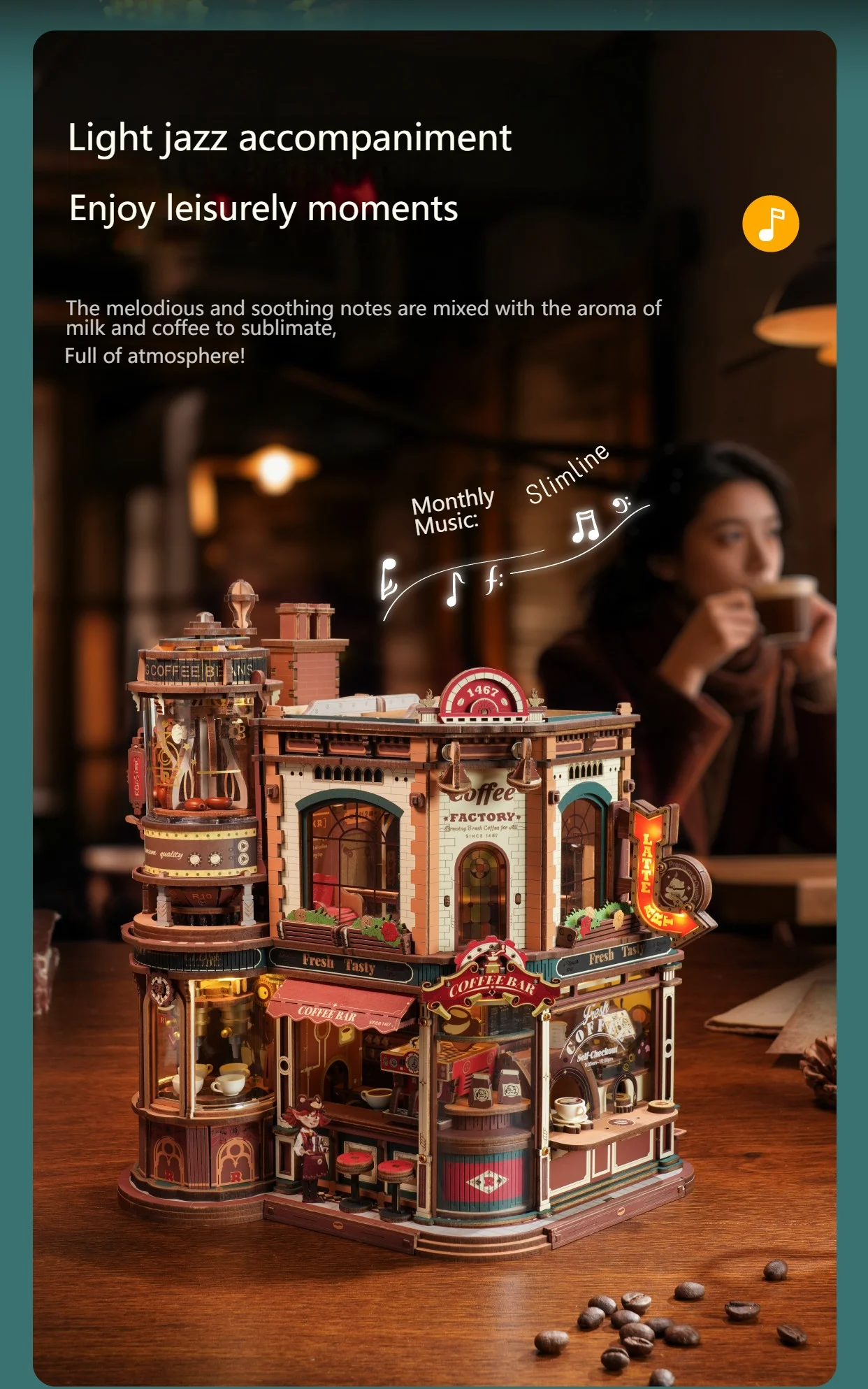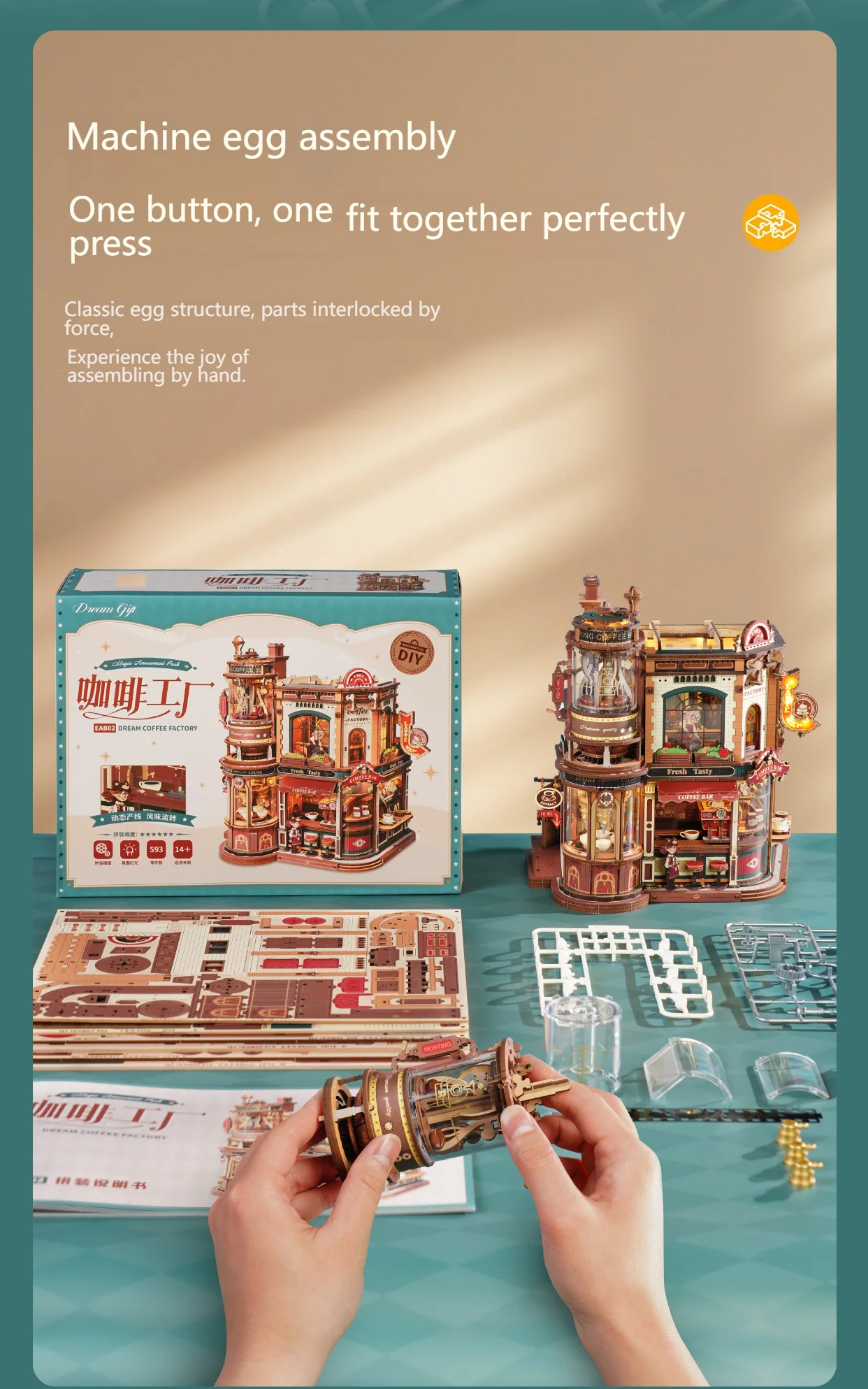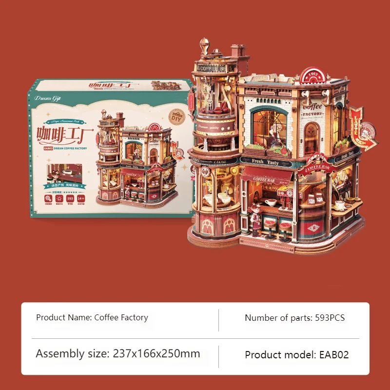 O Quebra-cabeça 3D Coffee Factory é uma incrível opção de entretenimento e decoração para adultos. Com 593 peças, este modelo desafiador proporciona horas de diversão e aprendizado, permitindo que você crie uma linda fábrica de café em miniatura. O kit é feito de madeira de alta qualidade e contém luzes LED que iluminam o ambiente, criando uma atmosfera acolhedora e única.