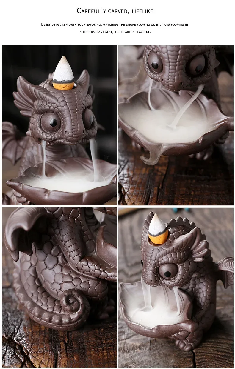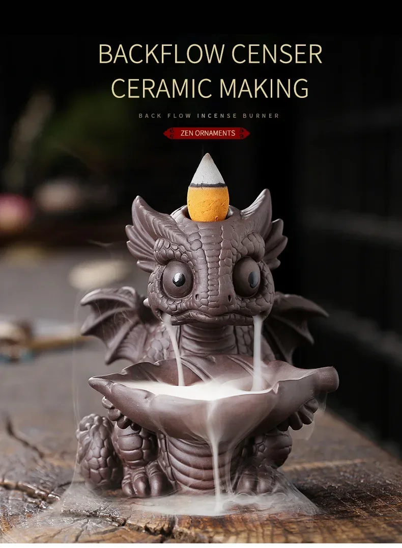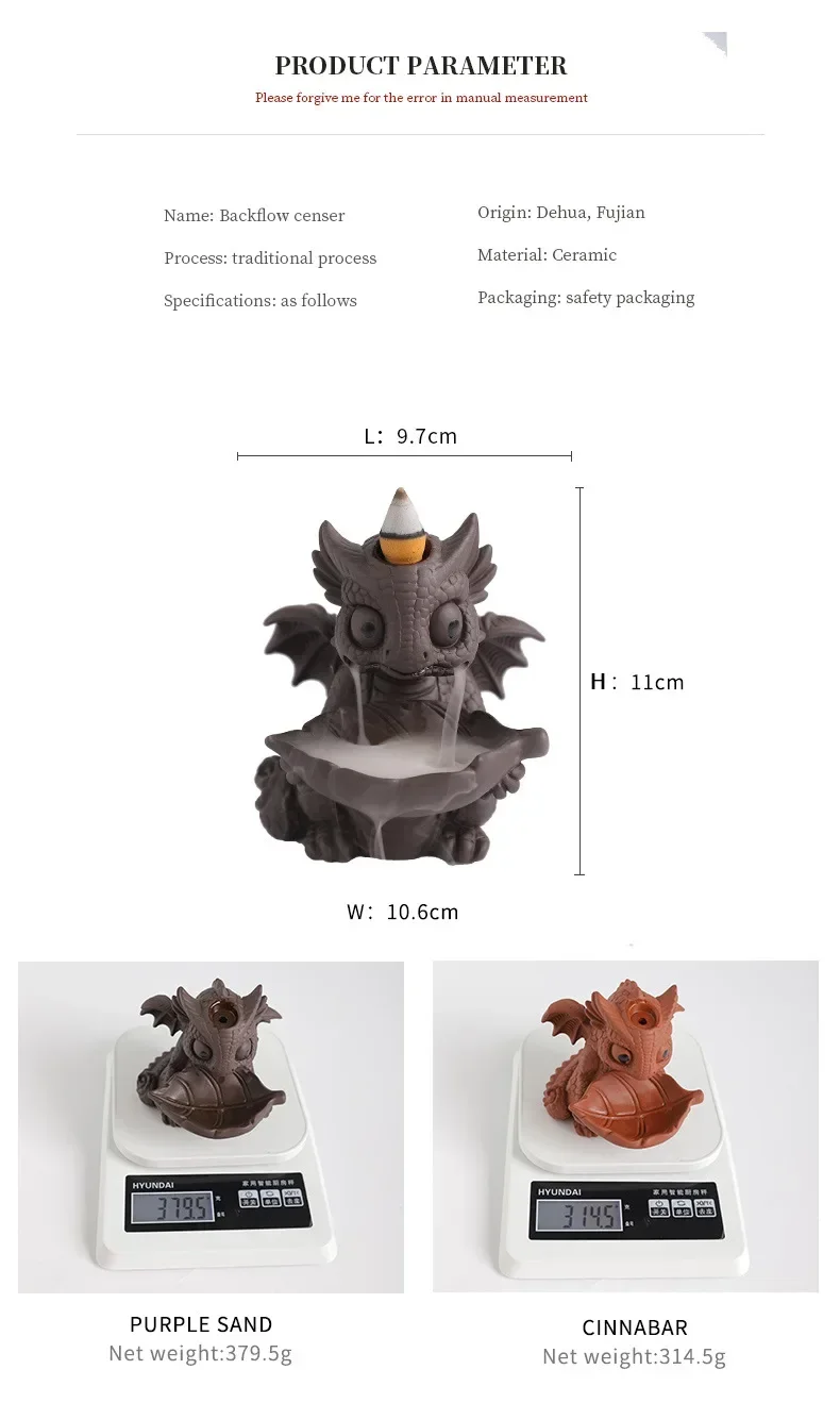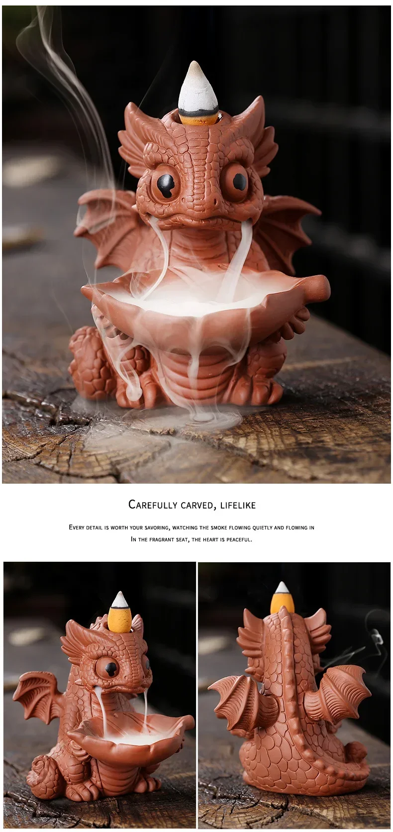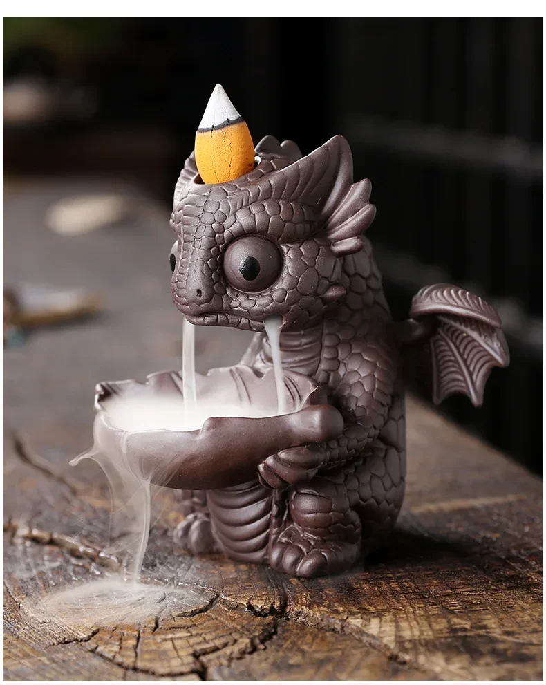 Transforme a atmosfera da sua casa com o encantador Queimador de Incenso de Cerâmica em formato de dinossauro bebê. Este adorável ornamento não apenas decora o ambiente, mas também proporciona um efeito cascata relaxante quando o incenso é aceso. Ideal para quem busca um toque de tranquilidade e beleza em sua sala de estar, escritório ou espaço de meditação.