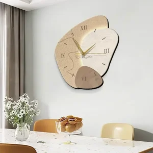 Transforme a decoração da sua sala de estar ou cozinha com este incrível relógio de parede. Com um design criativo e minimalista, ele se destaca em qualquer ambiente, trazendo um toque de elegância e modernidade. Seu formato único e a combinação de materiais como bambu e madeira garantem um visual sofisticado e contemporâneo.