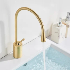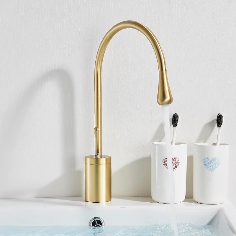 Transforme seu banheiro ou cozinha com a elegante torneira de pia em latão dourado escovado. Este misturador montado no deck combina funcionalidade e estilo, oferecendo um design contemporâneo que se destaca em qualquer ambiente. Com um sistema de cascata giratória de 360°, você terá total liberdade de movimento ao usar a torneira, facilitando o enchimento de recipientes e a limpeza da pia.