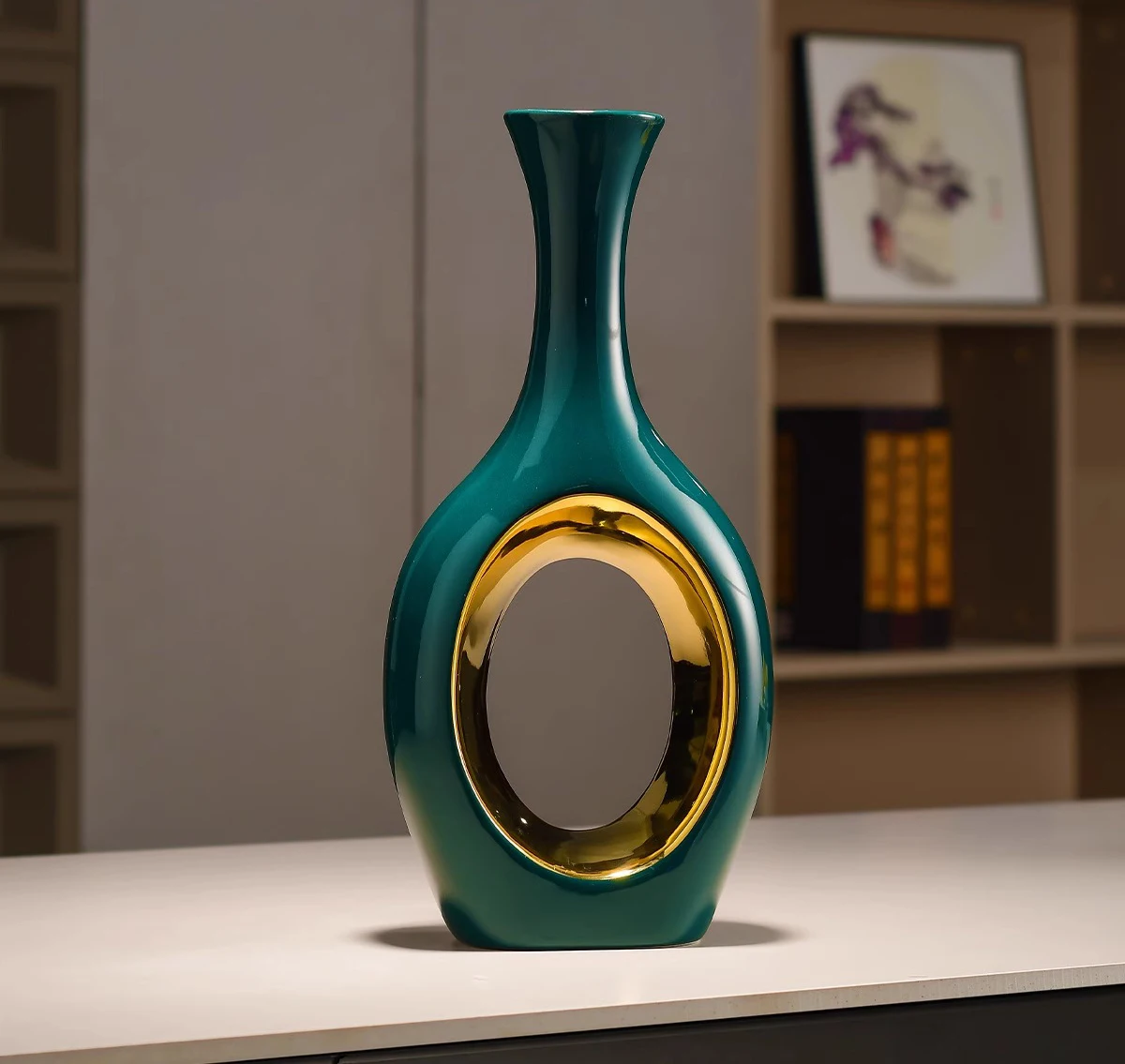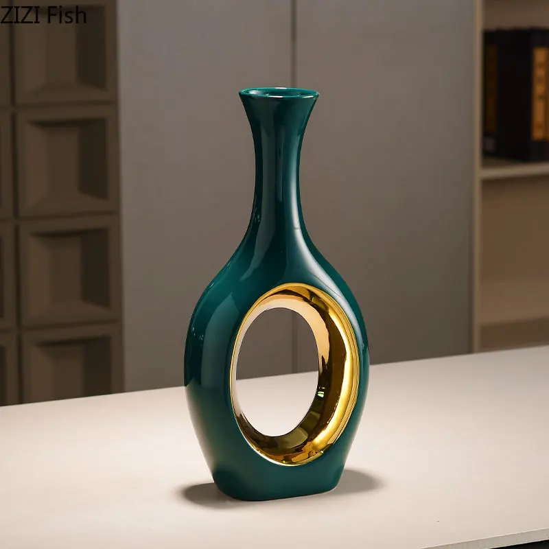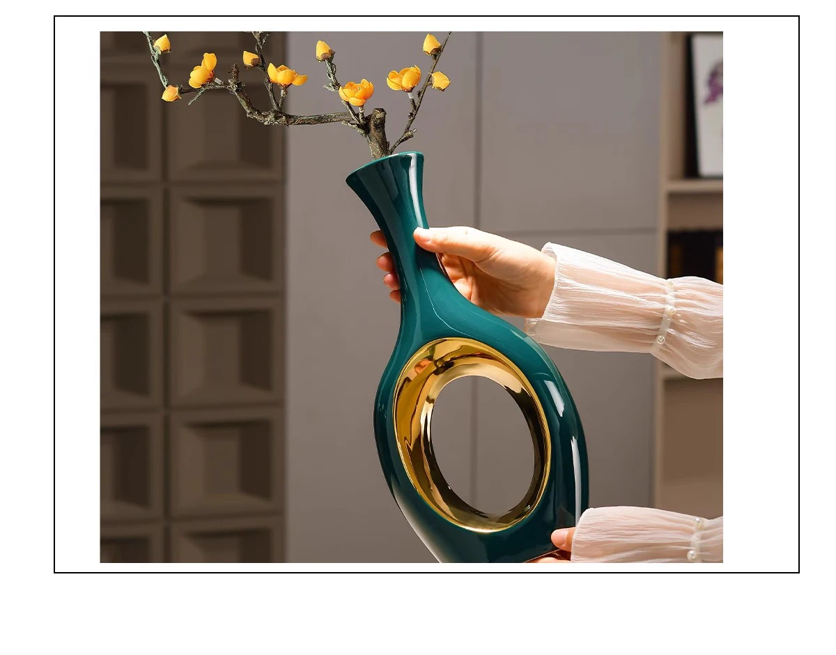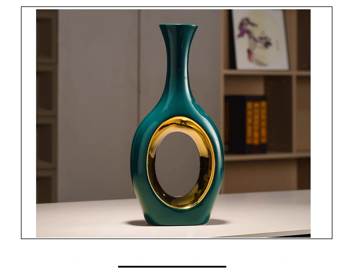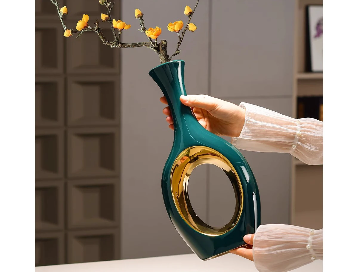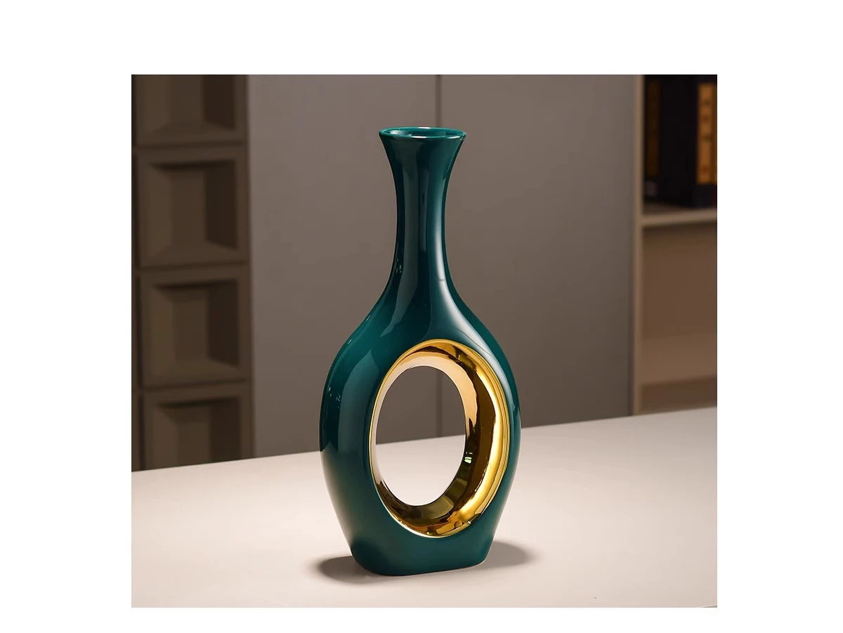 Transforme a sua decoração com o elegante Vaso de Cerâmica Verde Banhado a Ouro. Este vaso moderno é perfeito para arranjos de flores artificiais, trazendo um toque de sofisticação e estilo para qualquer ambiente. Ideal para mesas de jantar, salas de estar ou quartos, ele se destaca pela sua cor vibrante e acabamento em ouro, que adiciona um charme especial.